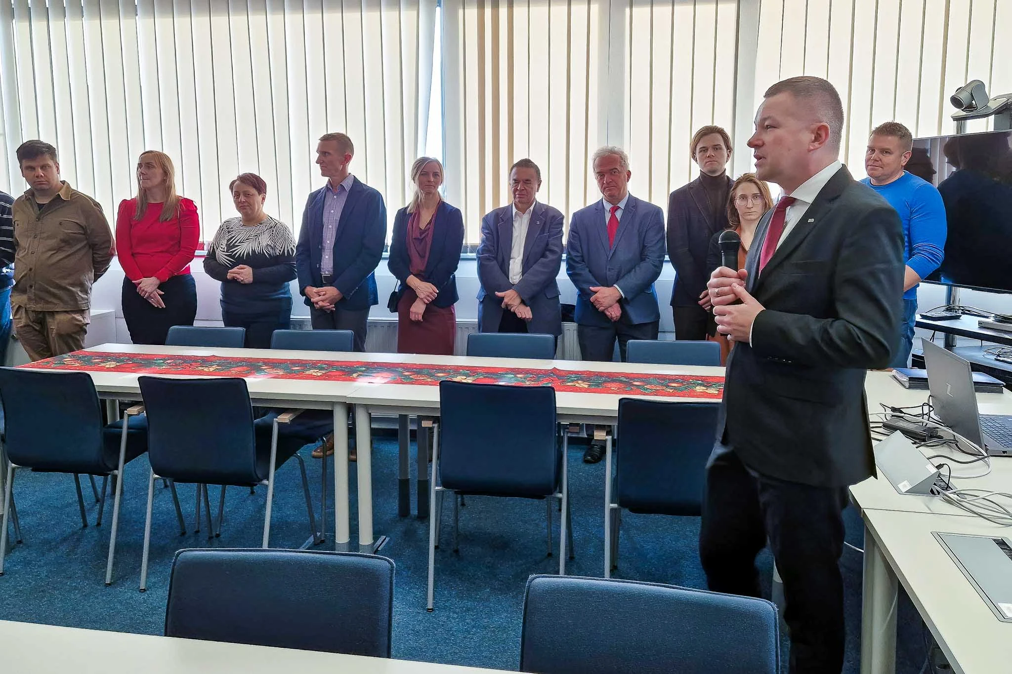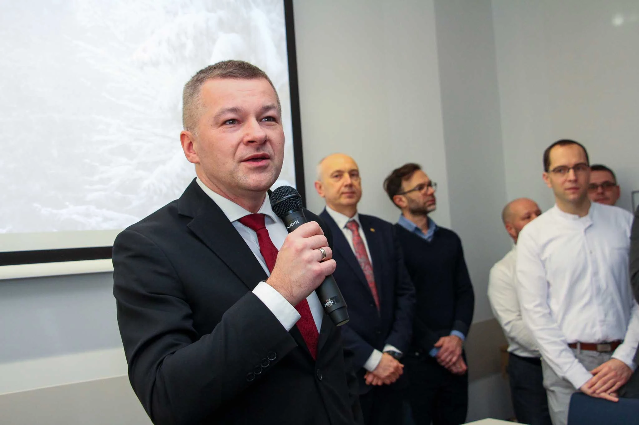 W imieniu Dziekana, prof. Sławomira Gruszczyńskiego, życzenia złożył Prodziekan ds. Nauki, prof. Robert Wójcik, który w swoim wystąpieniu krótko podsumował miniony rok, podziękował za zaangażowanie oraz odniósł się do planów i wyzwań stojących przed Wydziałem w nadchodzącym czasie.