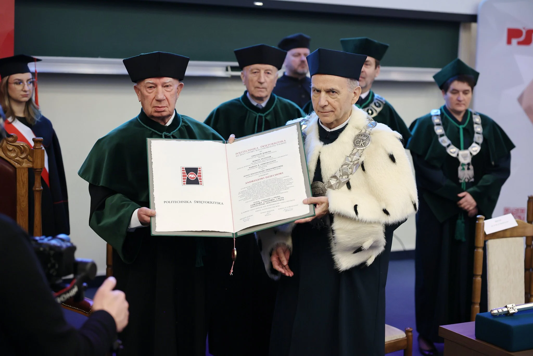 14 stycznia w Politechnice Świętokrzyskiej odbyła się uroczystość nadania tytułu doktora honoris causa związanemu zawodowo z Instytutem Telekomunikacji prof. dr hab inż. Andrzejowi Dziechowi – wybitnemu uczonemu o międzynarodowym autorytecie, którego dorobek naukowy i działalność badawcza w sposób trwały wpisały się w rozwój nowoczesnych technologii cyfrowych oraz w historię polskiej i europejskiej nauki.