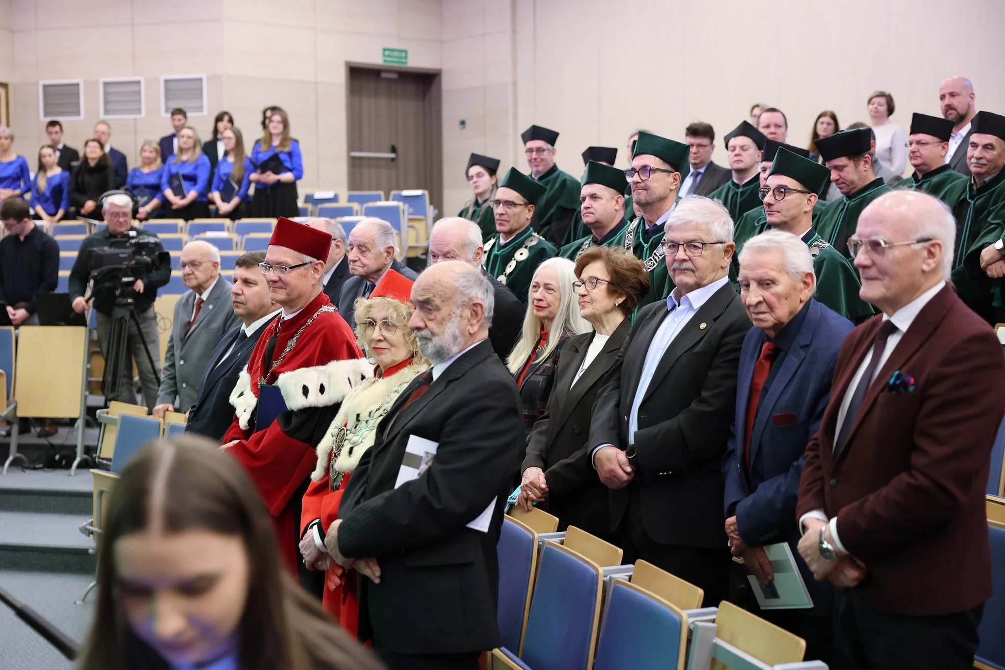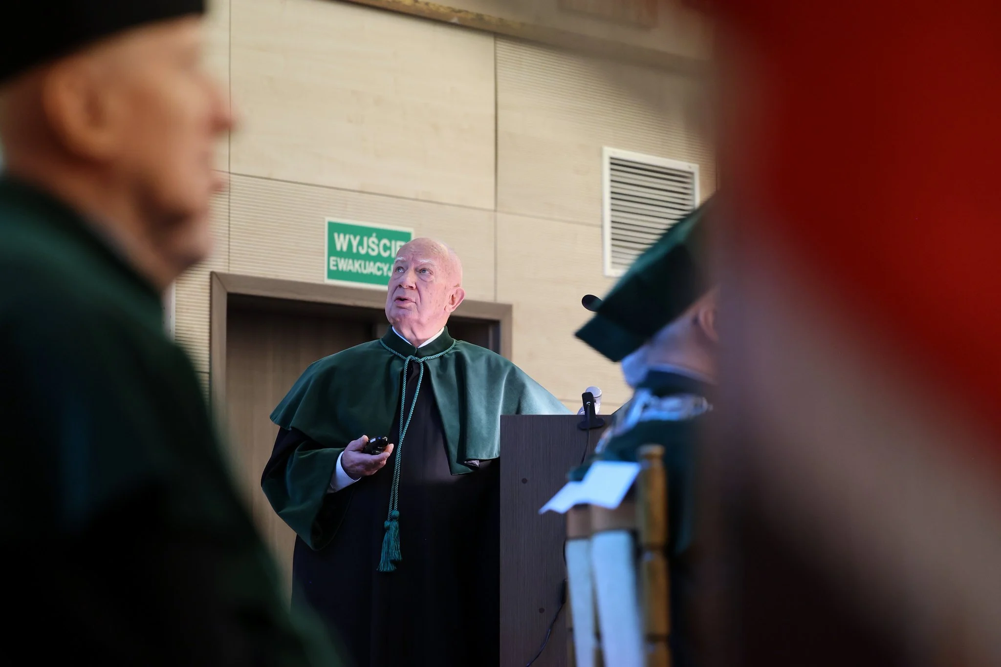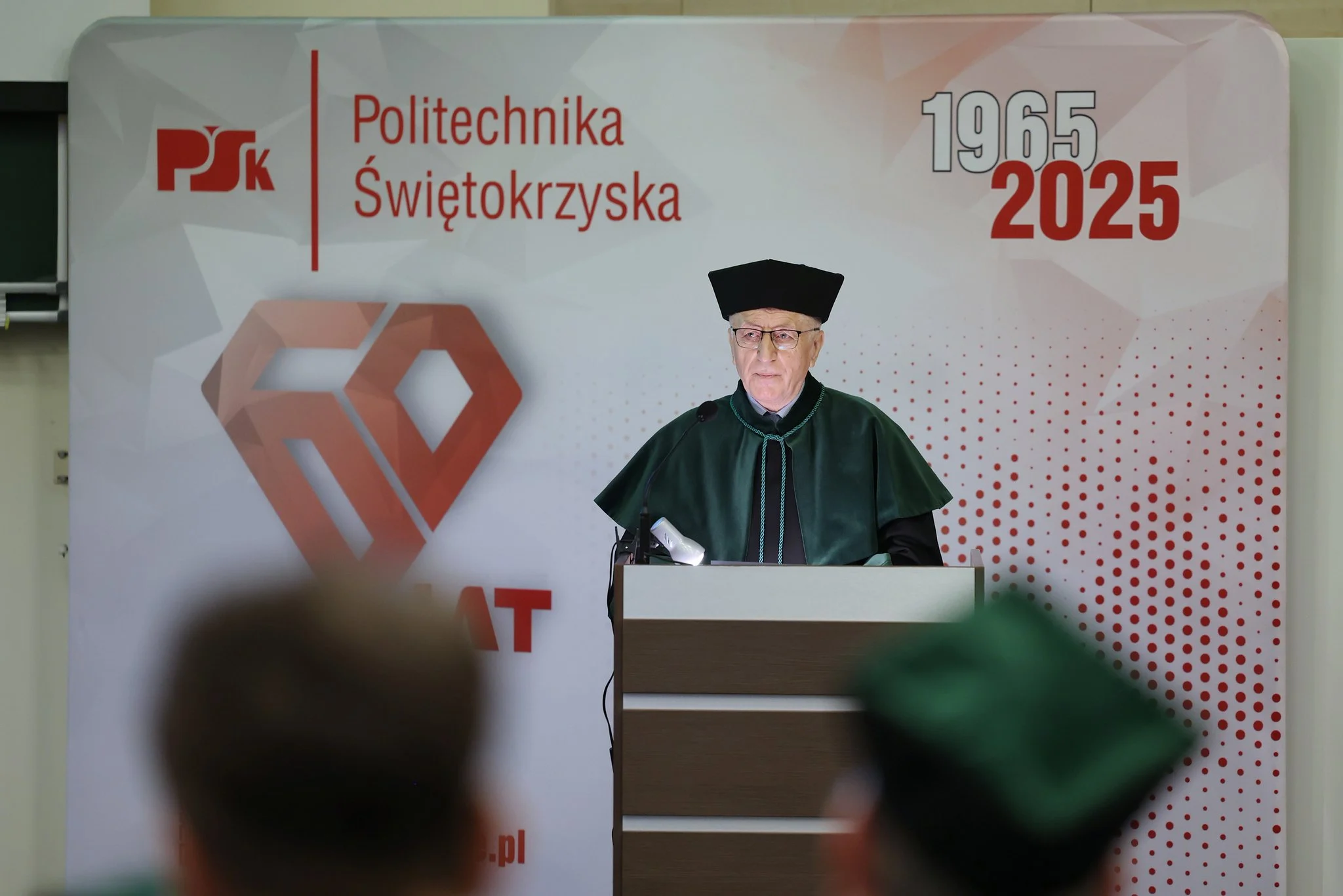 Odbierając tytuł doktora honoris causa, prof. Andrzej Dziech wyraził głębokie wzruszenie, podkreślając osobisty charakter wyróżnienia. Zwrócił uwagę, że Politechnika Świętokrzyska była miejscem jego pierwszych doświadczeń akademickich i zawodowych, które ukształtowały dalszą drogę naukową. Dziękując władzom uczelni, recenzentom i laudatorowi, Profesor przypomniał symboliczny wymiar relacji mistrz–uczeń, która po latach zamknęła się w procedurze nadania najwyższej godności akademickiej. W swoim wystąpieniu podkreślił również znaczenie wieloletniej współpracy zespołowej – zarówno z badaczami Akademii Górniczo-Hutniczej, jak i z naukowcami z Kielc oraz innych ośrodków w Polsce i za granicą – akcentując, że jego osiągnięcia były zawsze efektem pracy wspólnotowej. Szczególne miejsce w przemowie zajęło wspomnienie prof. Jerzego Seidlera, pioniera polskiej teleinformatyki, którego intelektualny wpływ Profesor Dziech wskazał jako jeden z fundamentów własnej drogi naukowej.
